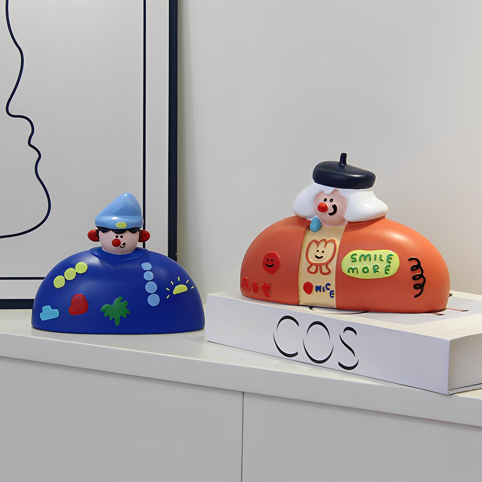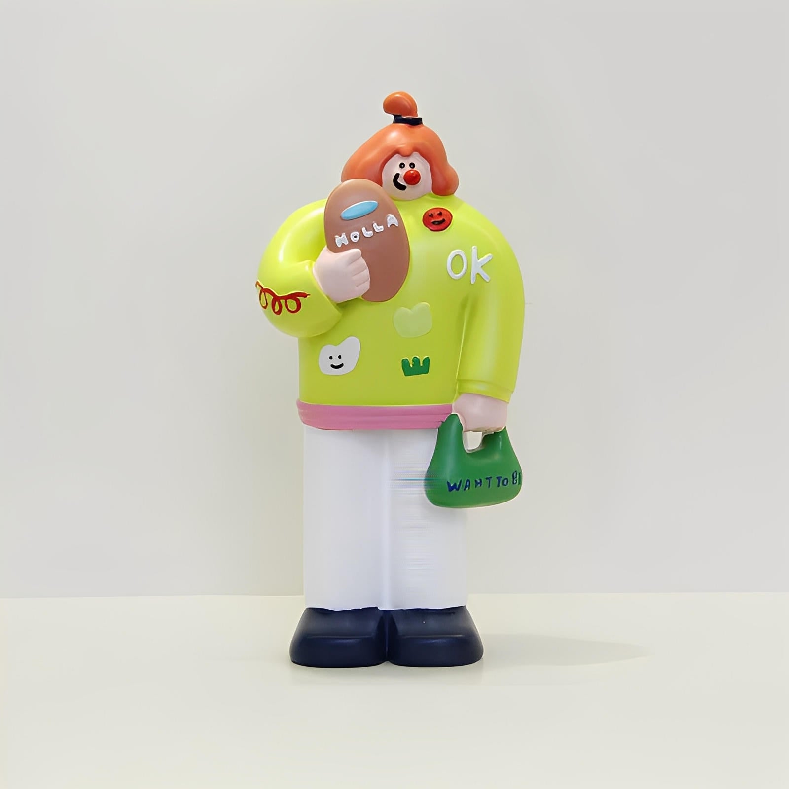 Chunky curves and matte pastel tones define these modern pop-art figurines, each crafted with a bold, blocky silhouette that feels substantial in hand. Their playful posture and relaxed expressions create a striking display that invites character and personality into your space.