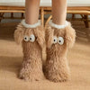 Crafted from plush faux-fur, these cozy socks wrap your feet in a soft, cloud-like warmth that feels like a cheerful hug on a chilly day. Adorned with dimensional googly eye details and floppy ears, each pair offers a cheerful escape from the cold.